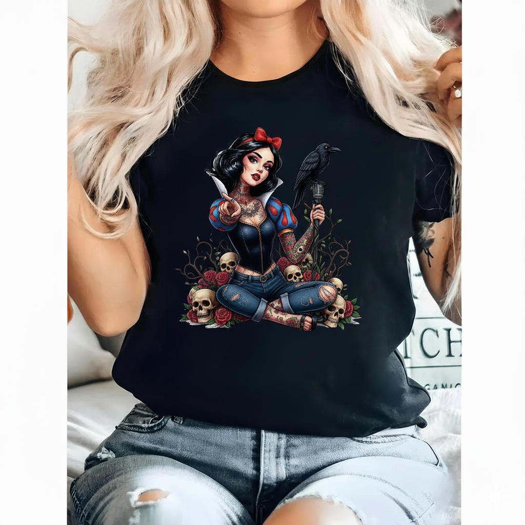 Camiseta Premium Plus Size Estampa Esqueleto e Rosa, Gola Redonda Manga Curta Unissex Oversized