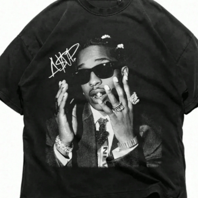 Camiseta Preta Estampa Rapper Streetwear Masculina Slim Hip Hop Retrô Algodão Premium