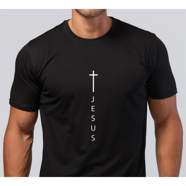 Camiseta Preta Jesus Cristo Cruz Evangélica Cristã Camisa Religiosa 100% Algodão Malha 30.1 Unissex