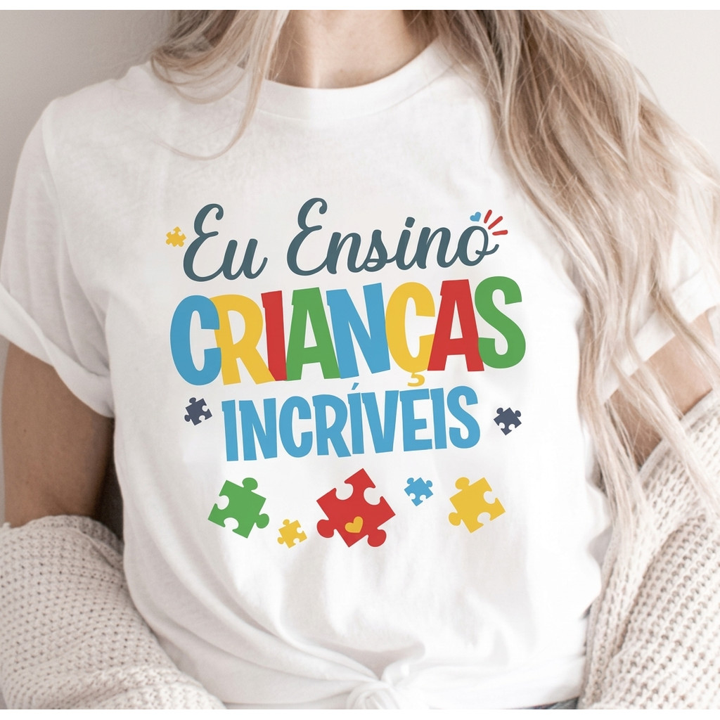 Camiseta Profissões Professora Educação Infantil Camisa Eu Ensino Crianças Incríveis Pedagoga 2026