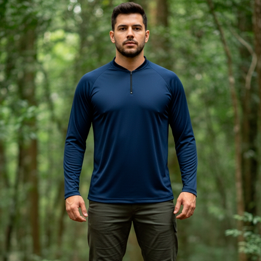 Camiseta Proteção UV de Pesca Térmica Gola Alta com Zíper Masculina Verde Camisa