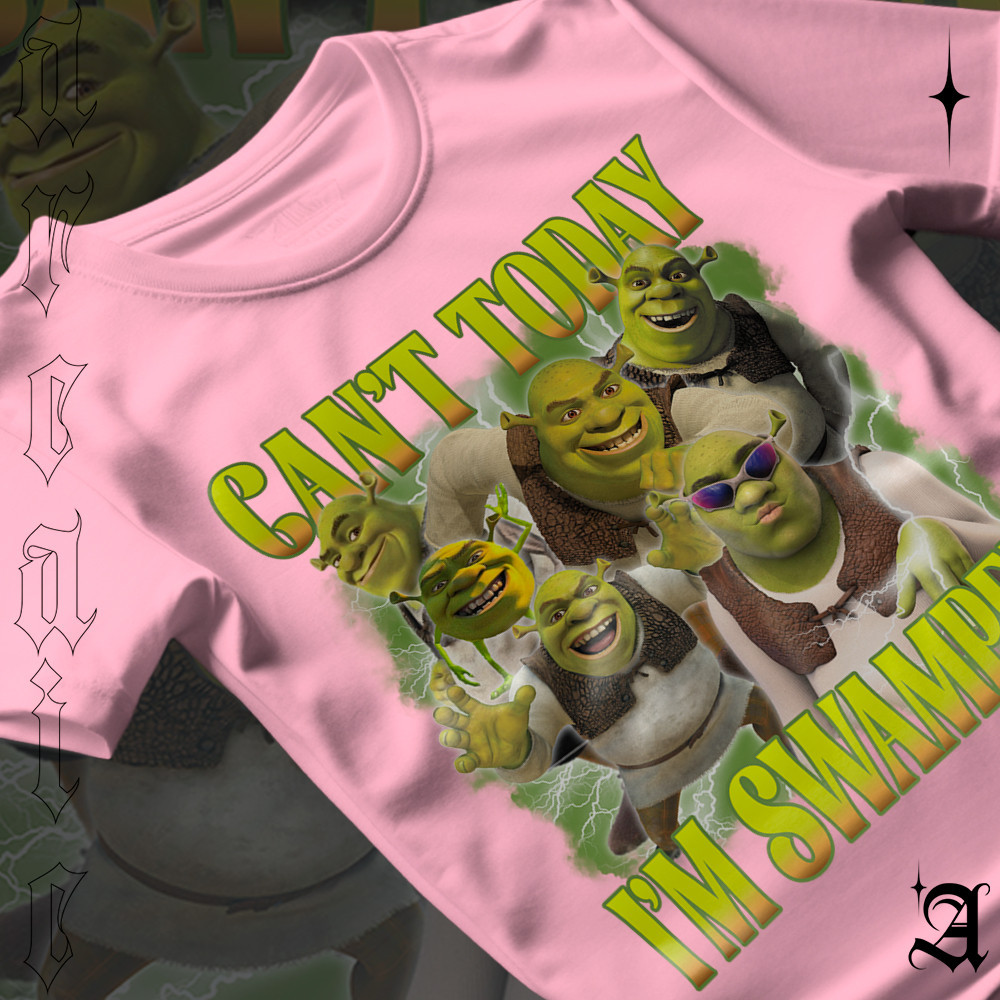 Camiseta Qualidade Filme Shrek Meme Não posso hoje Estou Inundado Can't Today I'm Swamped Cartoon Envio Rapido