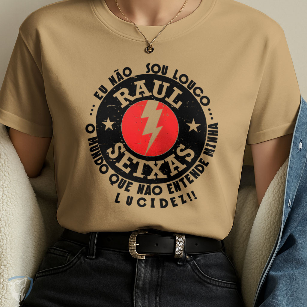 ✨ Uma homenagem ao mestre do rock brasileiro e à liberdade de pensar diferente. Esta camiseta celebra Raul Seixas, ícone da música e da atitude, com a frase marcante “Eu não sou louco… é o mundo que não entende minha lucidez!!”. A arte circular com raio vermelho e tipografia vintage cria um visual forte, cheio de identidade e espírito livre — perfeita para quem vive fora da caixa. 👕 Destaques do produto: – Modelagem unissex com caimento moderno e confortável. – Estampa inspirada no estilo retrô do rock nacional. – Gola careca e mangas curtas, ideal para o uso casual. – Produzida em algodão premium de toque suave e respirável. – Indispensável para fãs de Raul Seixas e da cultura musical brasileira. 💡 Sugestão de uso: Combine com jeans, jaqueta de couro ou tênis casual para um visual autêntico e cheio de atitude. Perfeita para shows, eventos culturais ou o dia a dia. 📌 Informações técnicas: – Material: 100% algodão premium – Gênero: Unissex – Finalidade: Casual / cultural / musical – Estilo: Rock retrô – Cores disponíveis: neutras e básicas 🔥 Vista a filosofia de Raul Seixas e mostre que a lucidez também é uma forma de rebeldia.