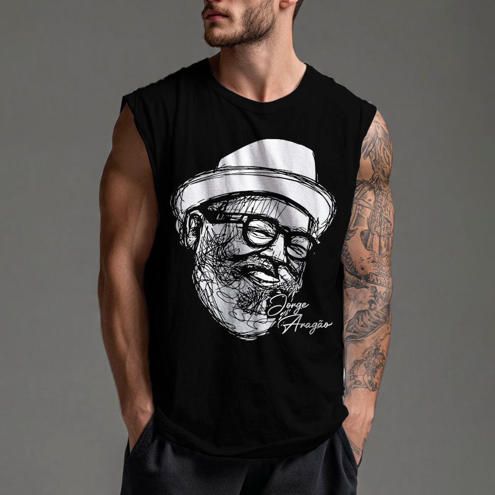 camiseta regata arte vintage machão oversized jorge aragão musico brasileiro samba carnaval