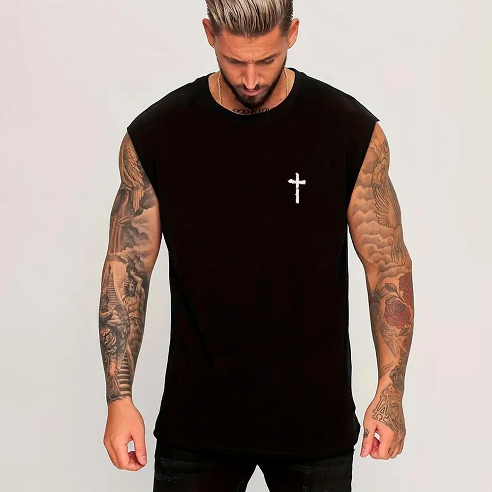 Camiseta Regata Machão Cruz Cristã Minimalista P ao G5