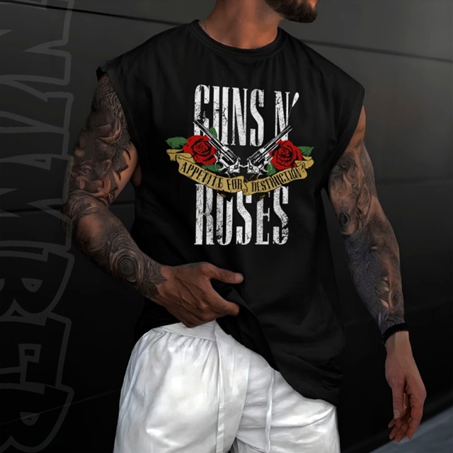 Camiseta regata machao oversized masculino rock banda guns n roses Longline em algodao unissex