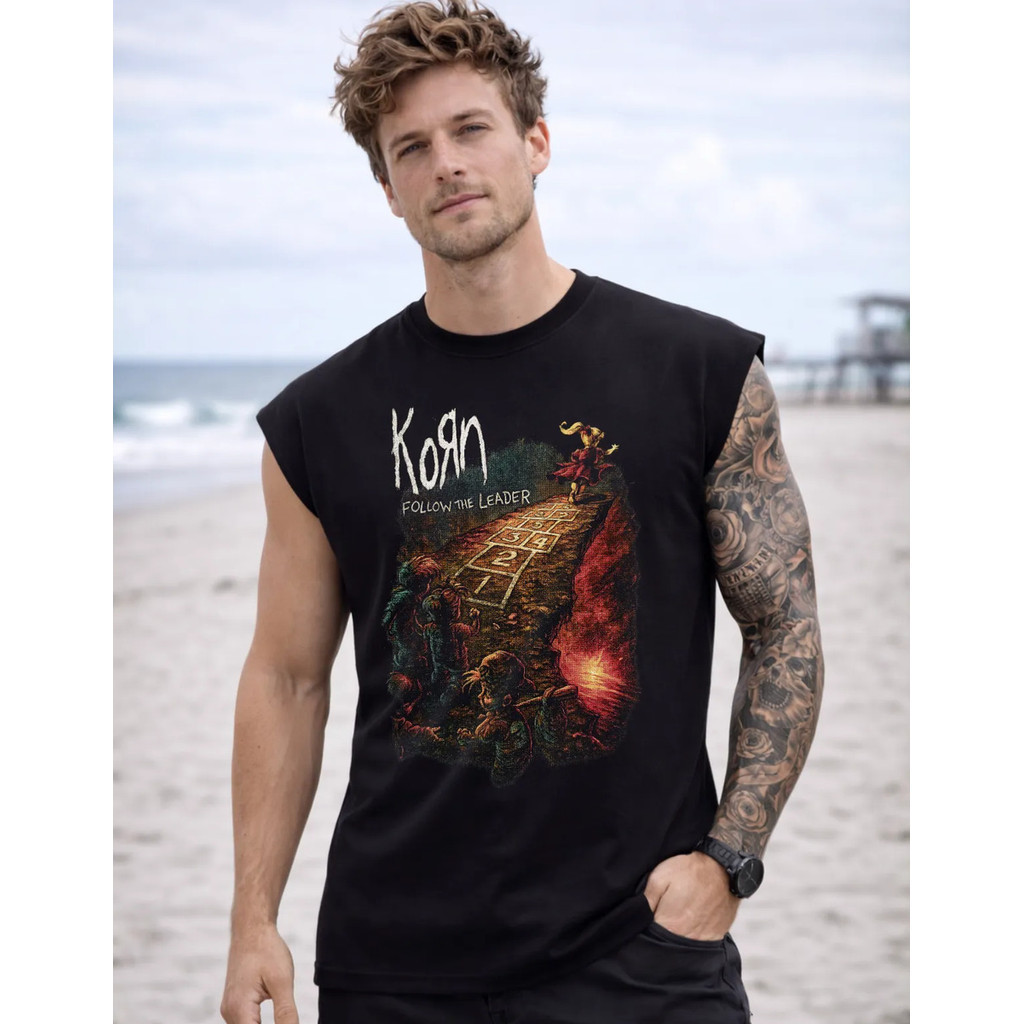 Camiseta Regata Oversized Rock Korn Dark Cavada