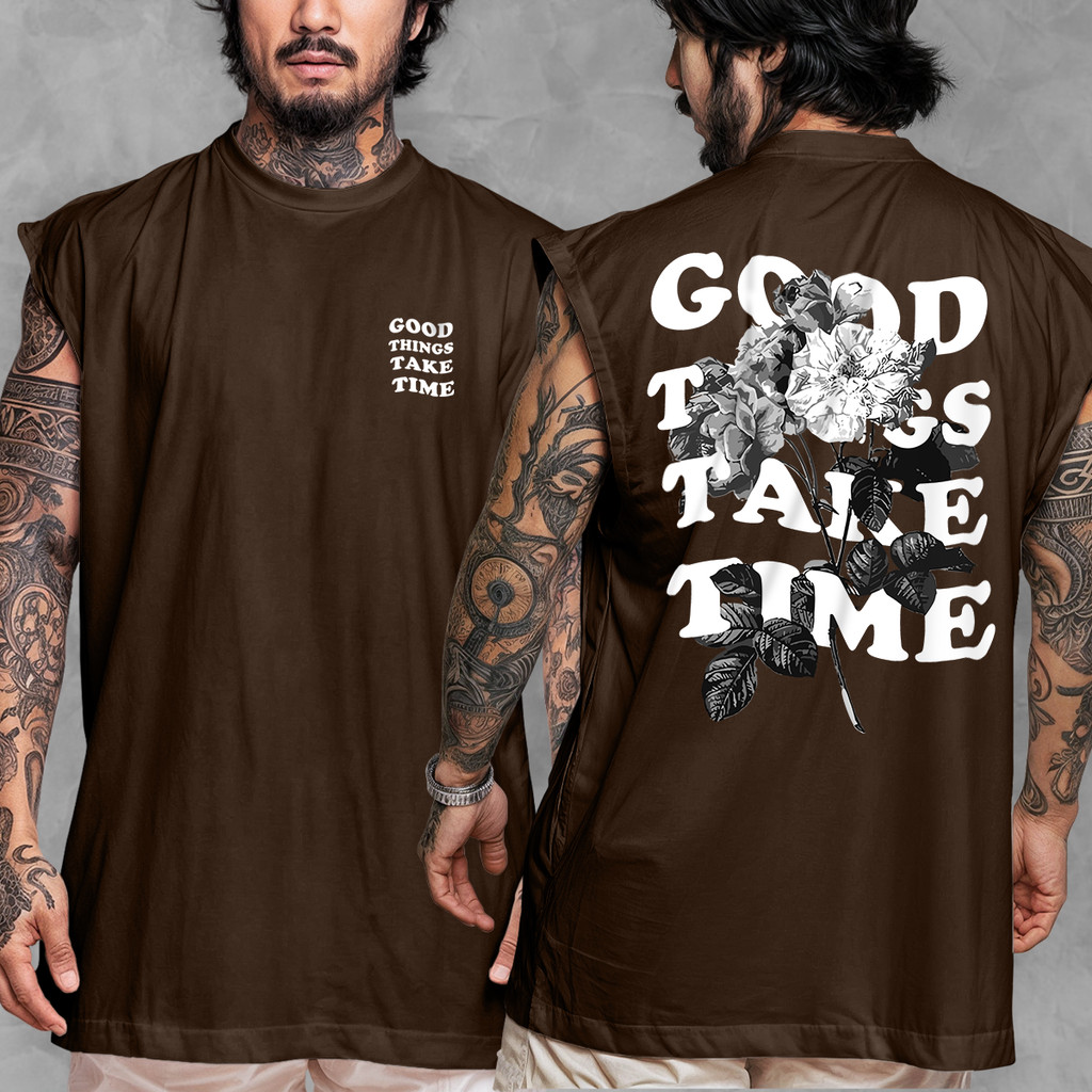 Camiseta Regata Oversized Streetwear Estampada Good Times Take Time Em Algodão