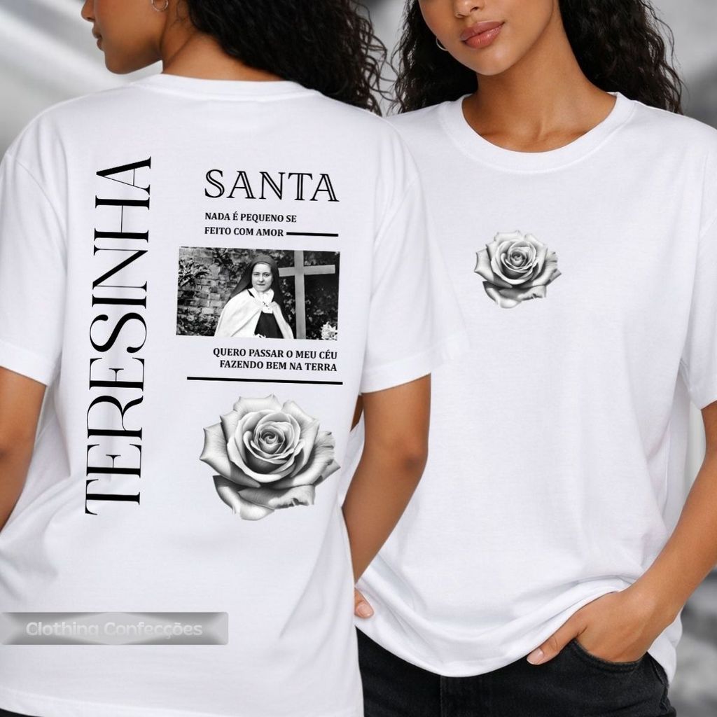 Camiseta Religiosa Santa Teresinha Do Menino Jesus Santa Das Rosas Cristãos Devotos