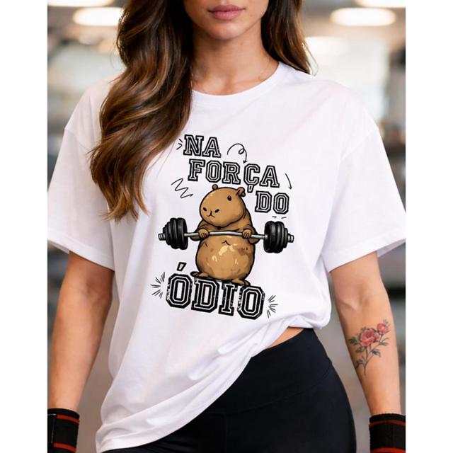 Camiseta Roupa de Academia Feminina Blusa Estilosa Camisa Tshirt Algodao Material: Confeccionada com 100% algodão de alta qualidade, garantindo uma sensação suave e prazerosa contra a pele. O tecido de algodão puro proporciona conforto durante todo o dia e é ideal para uso em qualquer estação do ano. MEDIDAS EM CENTÍMETROS P- 55 cm de Altura e 47 cm de Largura M- 56 cm de Altura e 50 de Largura G- 60,5 cm de Altura e 51,5 de Largura GG- 62 cm de Altura e 53 de Largura ENVIO IMEDIATO!
