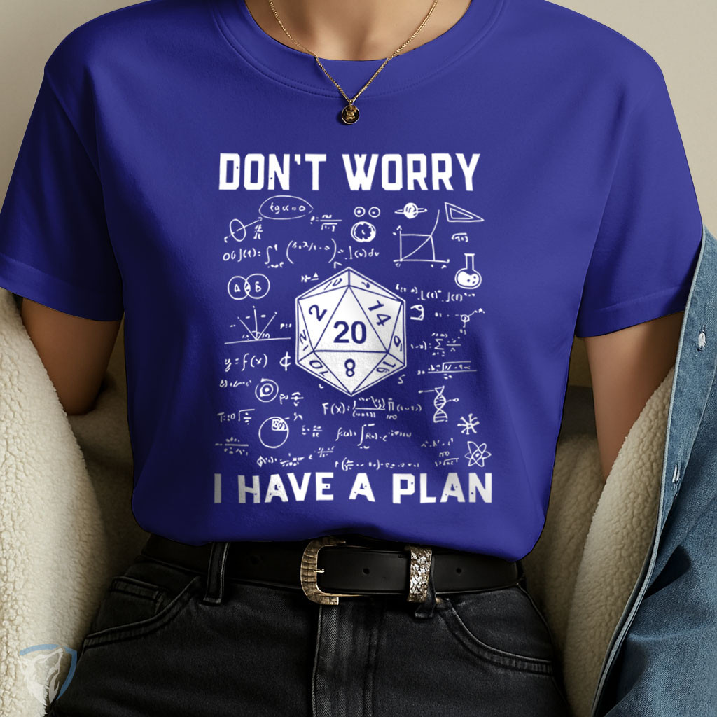 Camiseta RPG Estampada | Dado D20 Don’t Worry I Have a Plan Estilo Geek