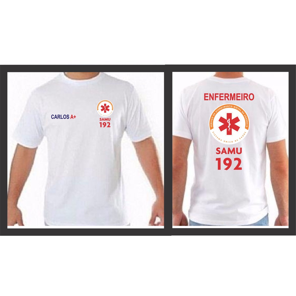 CAMISETA SAMU CONFECCIONADO EM TECIDO PV E ESTAMPA EM SILK ALTA DEFINIÇAO .APOS A COMPRA E SO PASSAR NAS PERGUNTAS O NOME E TIPO SANGUINEO A SER ESTAMPADO NA FRENTE E PROFISSAO NAS COSTAS