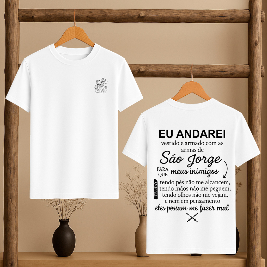 Camiseta São Jorge Oração Católica Umbanda Candomblé Ogum Orixá Eu Andarei Vestido Várias Cores