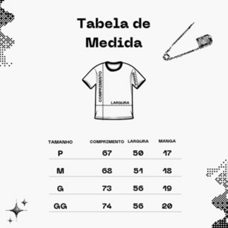 Camiseta Básica PEDIDOS REALIZADOS ATÉ AS 11:00 SÃO ENVIADOS NO MESMO DIA. Qualidades do nosso produto: - Costura Reforçada - Camiseta em 100% algodão - DTF de alta qualidade - Estampa em alta resolução - Não desbota - Caimento perfeito Material: - 100 Algodão - Hipoalergênico - Macio - Suave - Confortável Para qualquer dúdiva em relação aos tamanhos, confira nossa tabela de medidas. Tabela De Tamanho: P: Comprimento: 67cm - Largura: 50cm - Manga: 17cm M: Comprimento: 68cm - Largura: 51cm - Manga: 18cm G: Comprimento: 73cm - Largura: 52cm - Manga: 19cm GG: Comprimento: 74cm - Largura: 56cm - Manga: 20cm Tabela De Medidas (APROXIMADA): P: Altura 1,60m – 1,75m | Peso 60kg – 75kg M: Altura 1,75m – 1,85m | Peso 75kg – 80kg G: Altura 1,85m – 1,95m | Peso 85kg – 90kg GG: Altura 1,95m – 2,00m | Peso 90kg – 100kg PEDIDOS REALIZADOS ATÉ AS 11:00 SÃO ENVIADOS NO MESMO DIA. Estamos a disposição no chat!