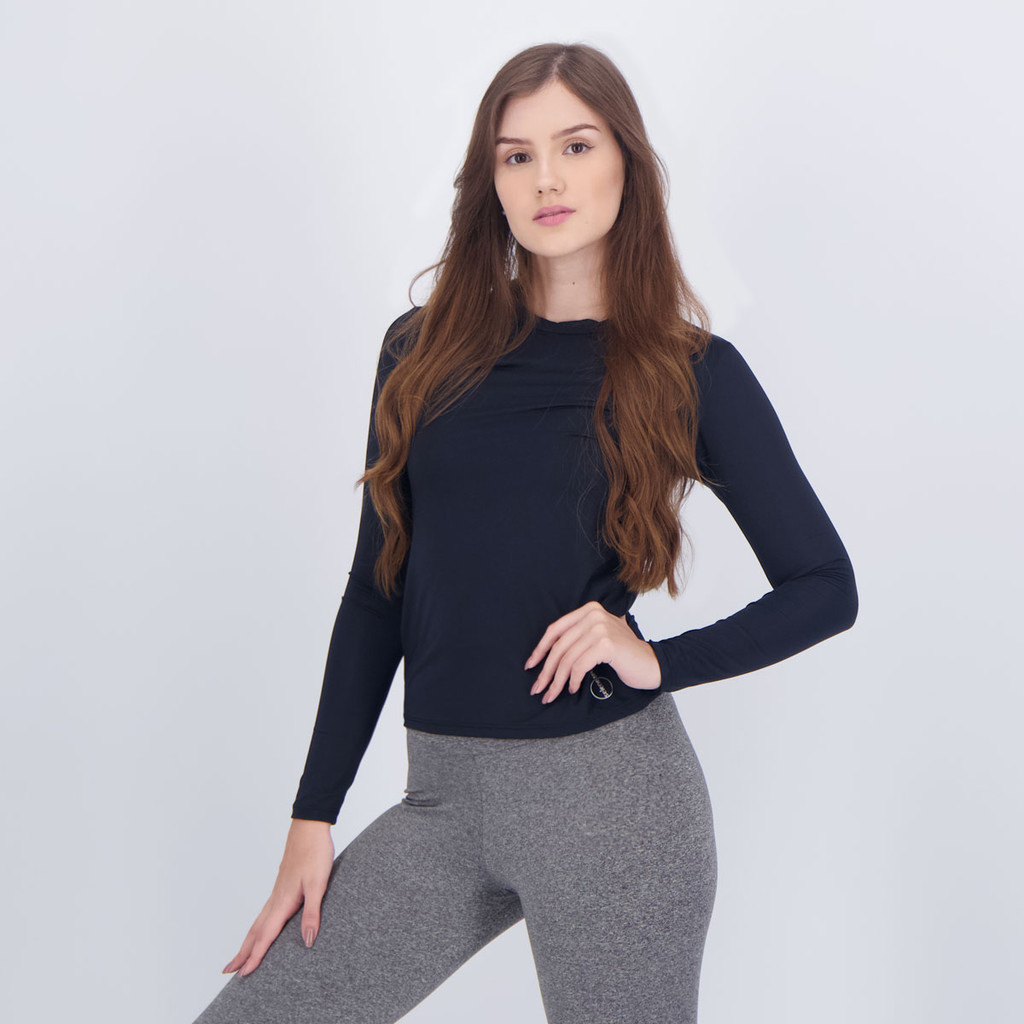 Camiseta Selene Manga Longa Proteção UV50+ Feminina Preta