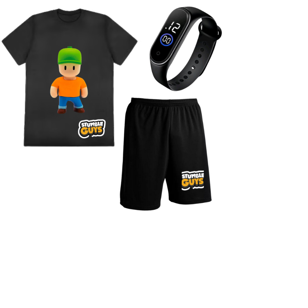 Camiseta + short +relógio Stumble Guys Meninos infantil e juventil 04 ao 16