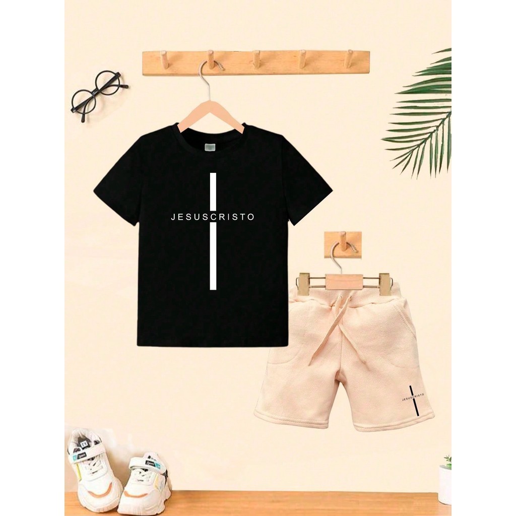 Camiseta + Short Safari Conjunto Jesus Cristo Infantil Uso Moda Teen Kids Bolso Lateral