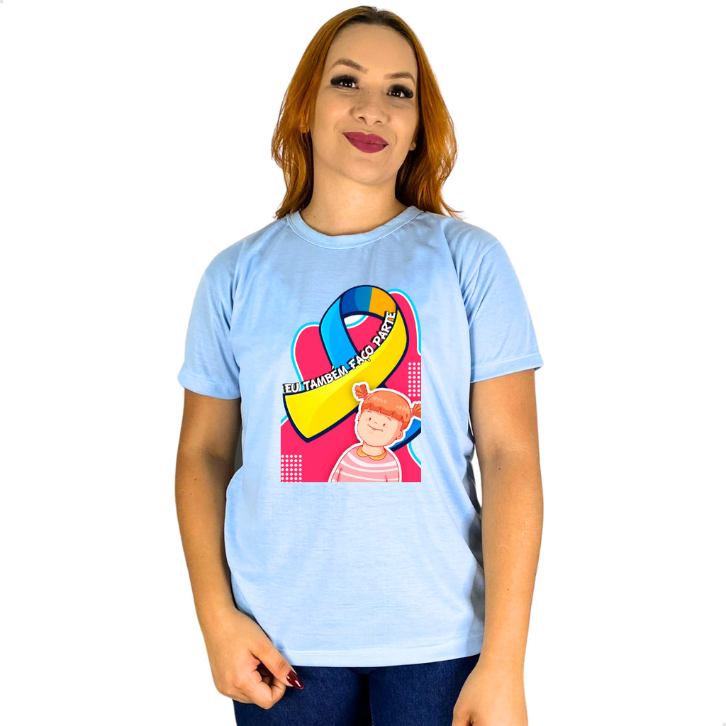 Camiseta Sindrome Down Tecido 100% Poliéster Tratamento Anti-Pilling (Não forma bolinhas) Manga curta, Gola Redonda Impressão digital de altíssima qualidade Você pode escolher os tamanhos P, M, G, GG, XG Medidas da Camiseta (Largura X Comprimento) P (51cm X 67cm) M (53cm X 69cm) G (56cm X 72cm) GG (59cm X 75cm) XG (62cm X 78cm)