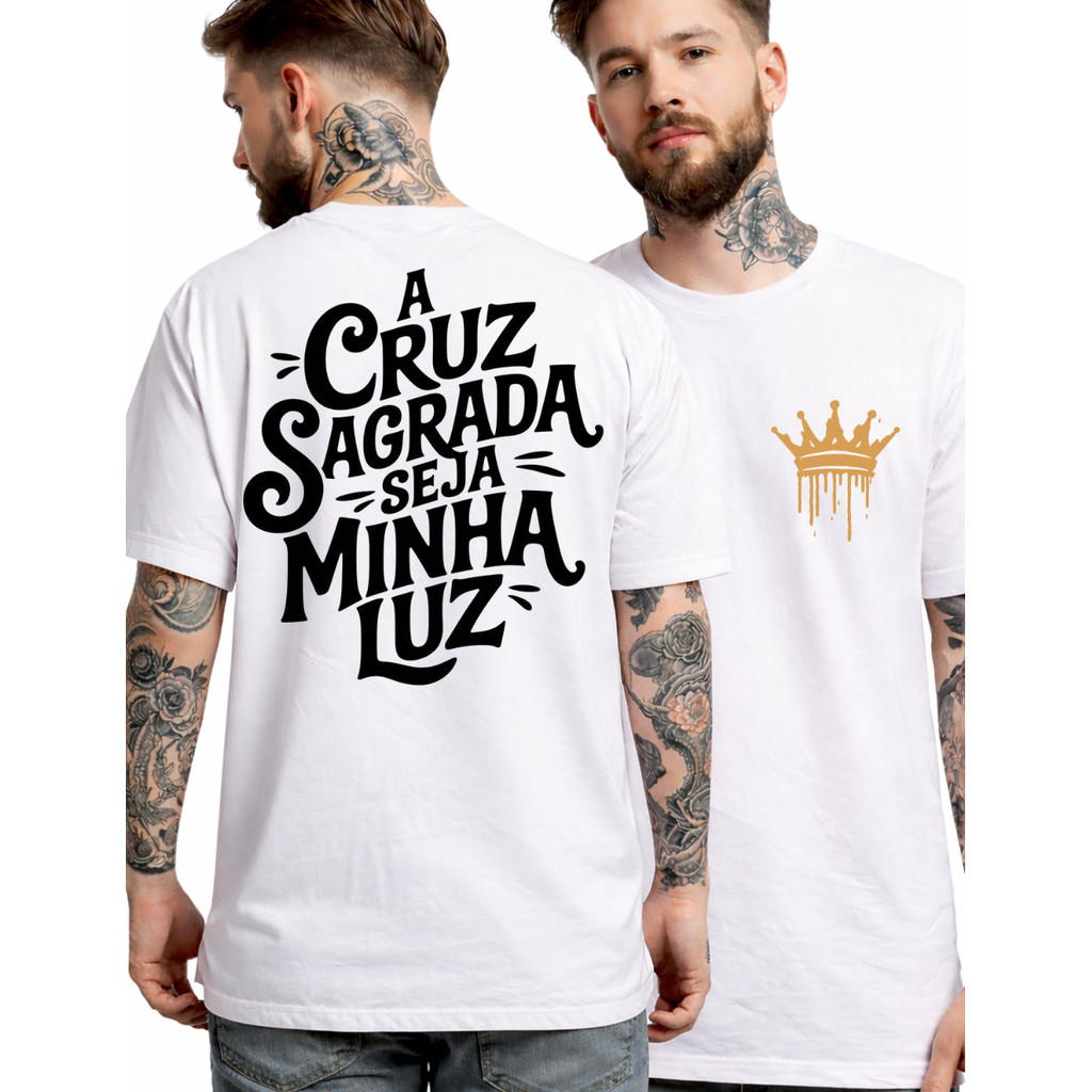 Camiseta T-shirt Casual Estilo Religioso Cruz Sagrada Camisa Cristã 100% Algodão Street Wear Premium