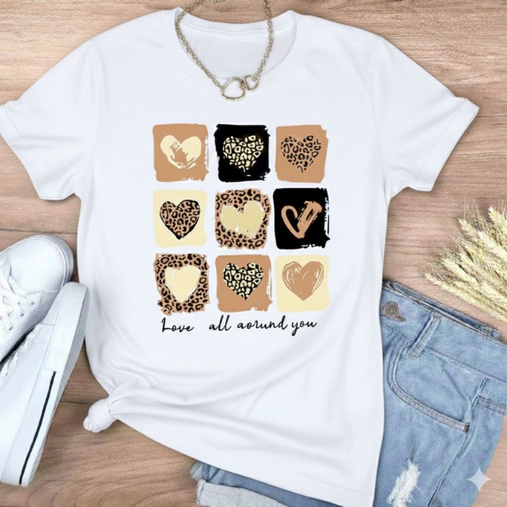 Camiseta T-shirt Love Coração Animal Print Tendencia 100% Algodão