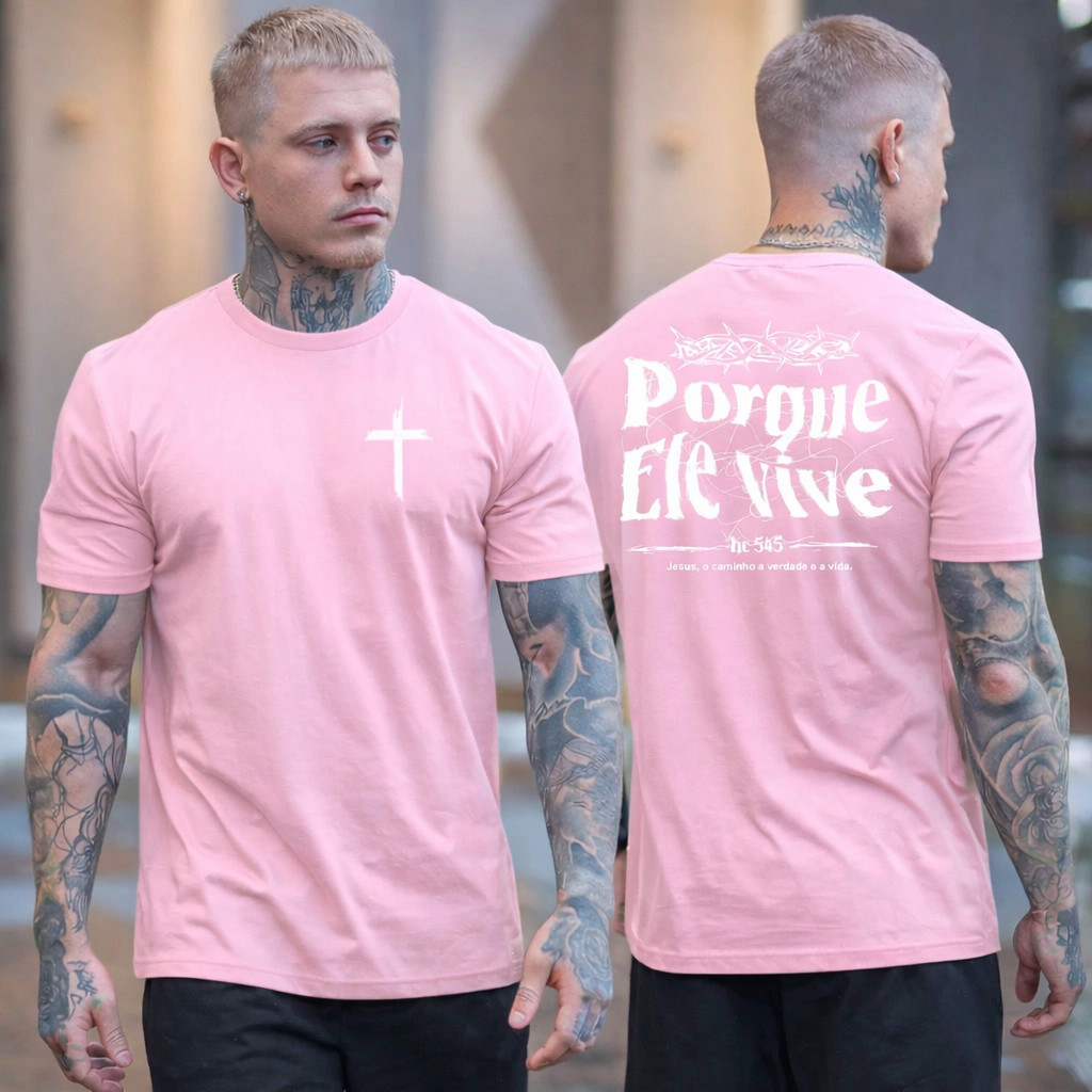 Camiseta T-SHIRT Masculina Cruz Porque Ele Vive Jesus 100% Algodão