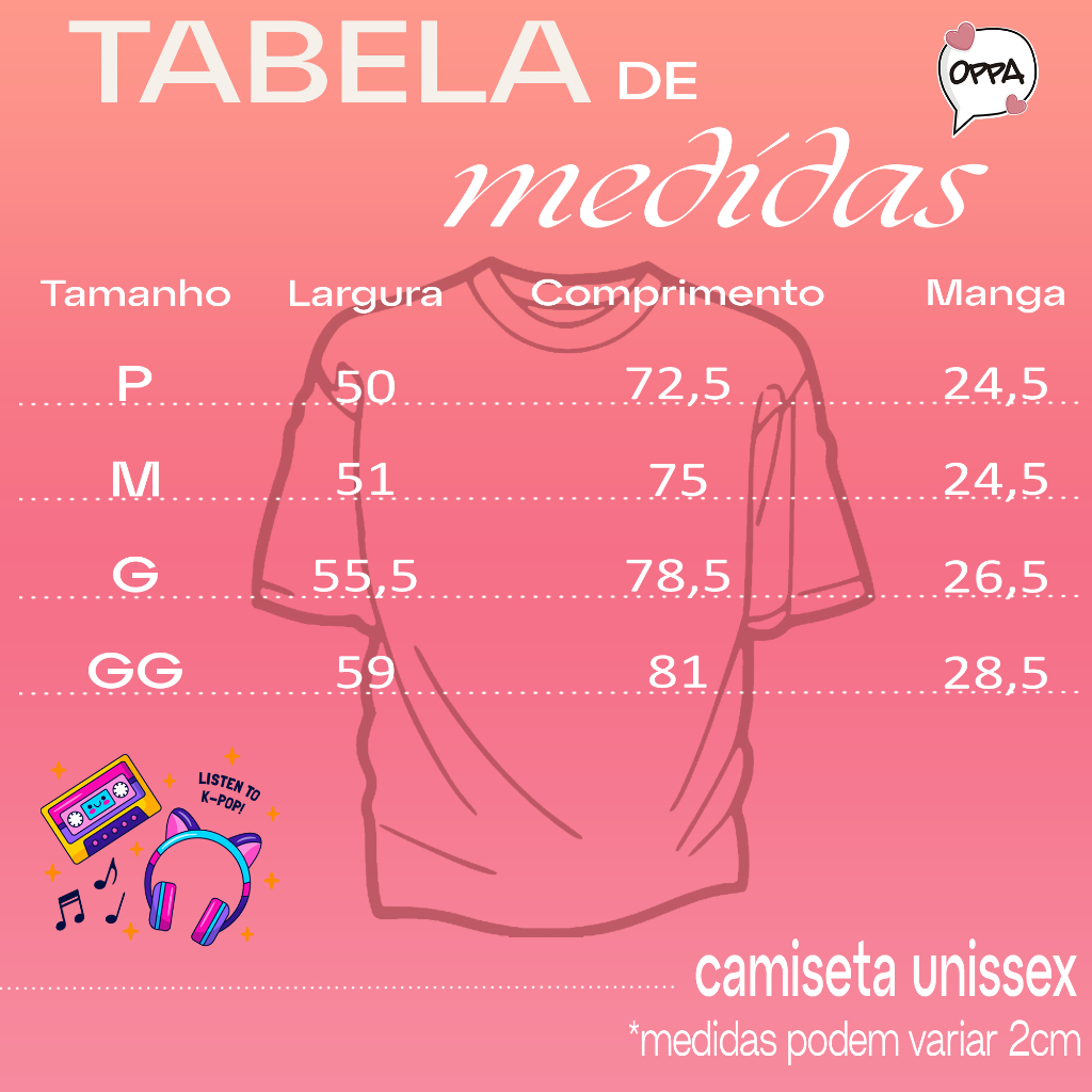 ONICHAN Somos oniichanclothes fabricamos roupas de kpop, anime e cultura oriental. Nossas camisetas são 100% algodão e os nossos moletons canguru/gola redonda 75% algodão e 25% poliéster. As estampas são feitas por DTF este processo por transferência garante que a qualidade da impressão é mantida, ou seja, a solidez da cor é assegurada, entre todas as técnicas de estamparia a DTF é uma das melhores do mercado atualmente. ATENÇÃO** AS MEDIDAS PODEM VARIAR 2cm PARA MAIS OU PARA MENOS Camiseta: .P - Largura: 48 cm - Comprimento - 68 manga Comprimento - 19,5 .M - Largura: 51,5 cm - Comprimento - 72 manga Comprimento - 20 .G - Largura: 53,5 cm - Comprimento - 76 manga Comprimento - 20,5 .GG - Largura: 54 cm - Comprimento - 76,5 manga Comprimento - 21,5 CUIDADOS COM O PRODUTO: - Lave o moletom e a camiseta com o lado da estampa pelo avesso, evite amassá-los - Não utilize alvejante, água: quente, ou lavagem no Modo Pesado da sua máquina - Lave de preferência em água fria, NÃO deixando o seu moletom de molho - Estenda após a lavagem, com secagem de preferência na sombra - Não passe o ferro por cima da estampa - Passe sempre pelo avesso e utilize preferencialmente uma tábua de passar forrada. Se você ainda tiver qualquer dúvida, envie sua pergunta pelo chat , iremos responder o mais rápido possível.