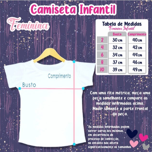 Valor do anúncio inclui 1 camiseta adulto + 1 camiseta infantil = 2 peças . Fazemos aplicação de pedrarias e a camiseta em outro modelo, envie mensagem que lhe enviamos mais informações. (IMPORTANTE) Camiseta confeccionada no tecido New Poli. 96% Polister 4% Elastano Tecido muito macio e com ótimo caimento. ->> P ao Gg adulto ->> Body P ao G bebê ->> 2 ao 10 infantil . - Estampas de qualidade (não racham, não desbotam, não descolam) - Tecido leve e fresco - Imagens nítidas com cores vivas As estampas das nossas camisetas possuem “toque zero”, já que o tingimento é feito diretamente nas fibras do tecido. Nossas camisetas podem ser lavadas na máquina de lavar roupas e pode passar o ferro quente em toda a camiseta, pois não soltam tinta e as estampas não racham.