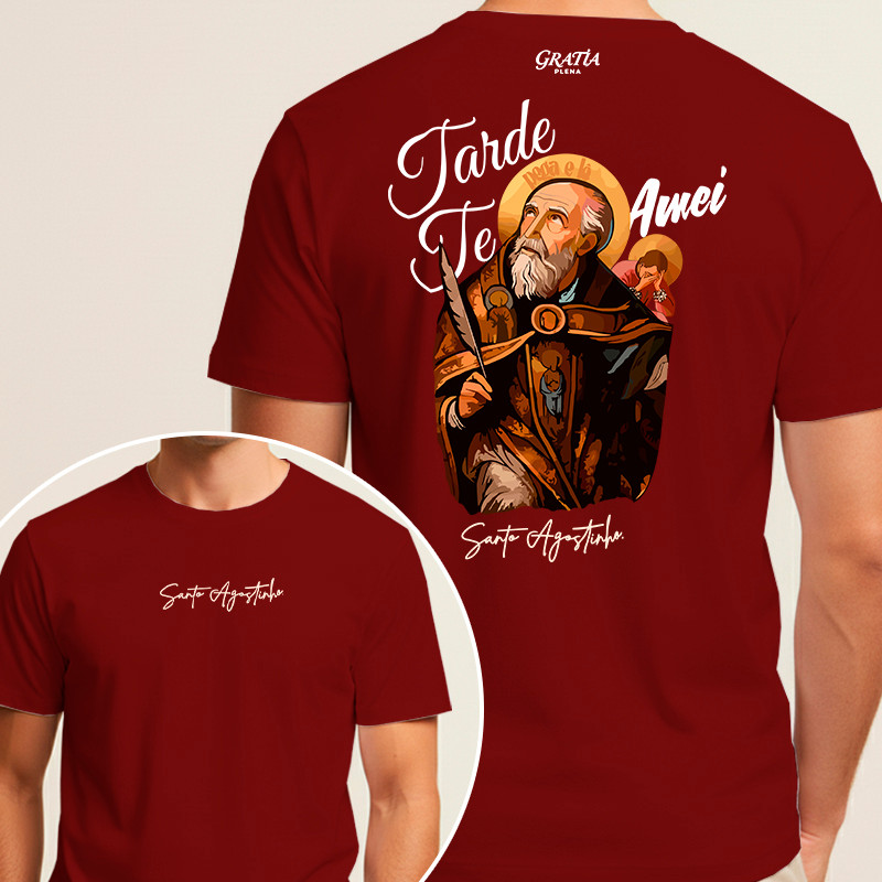 Há frases que atravessam séculos porque tocam diretamente o coração. “Tarde Te Amei”, de Santo Agostinho, não é apenas uma citação famosa — é um grito de conversão, um reconhecimento profundo de quem encontrou Deus depois de muito procurar no mundo. Esta camiseta nasce desse encontro tardio, porém transformador, falando diretamente com quem também já sentiu que a fé chegou como resposta, cura e recomeço. + Algodão confortável de alta qualidade, macio ao toque e ideal para uso diário + Modelagem unissex, com excelente caimento e liberdade de movimento + Estampa inspirada em Santo Agostinho, com significado espiritual profundo + Gola redonda e costura reforçada, garantindo durabilidade + Indicada para momentos de oração, encontros, missas e uso casual cristão Ao vestir esta camiseta, a sensação vai além do conforto físico. Ela carrega uma mensagem íntima, madura e verdadeira, que comunica fé sem precisar de explicações. Uma peça para quem entende que Deus sempre esteve ali — e que hoje escolhe viver essa presença com consciência, estilo e propósito.