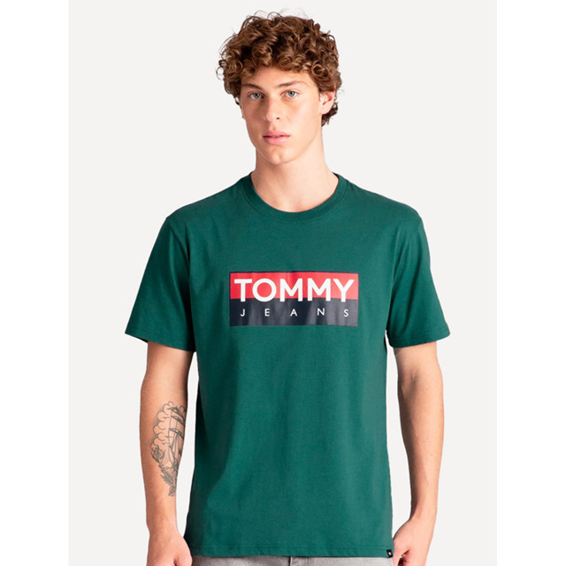 Camiseta Tommy Jeans Masculina Regular Entire Logo Verde Escuro integra a oferta da Shopee Brasil na subcategoria Camisetas (de Roupas Masculinas) por R$ 229,99 (4% de desconto sobre o preço original de R$ 239,57).
