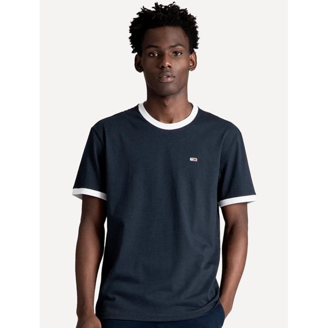 Camiseta Tommy Jeans Masculina Regular Flag Ringer Azul Marinho aparece na subcategoria Camisetas (de Roupas Masculinas) na Shopee Brasil por R$ 189,99 (5% de desconto sobre o preço original de R$ 199,99).