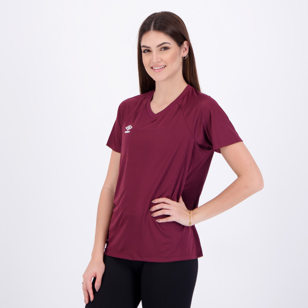 Composição: 100% Poliéster Cor predominante: Bordõ Indicado para: Treino Gênero: Feminino Origem: Nacional Manga: Curta Gola: V Dimensões aproximadas (A x L): P: 61 x 46 cm M: 63 x 48 cm G: 65 x 50 cm GG: 67 x 52 cm
