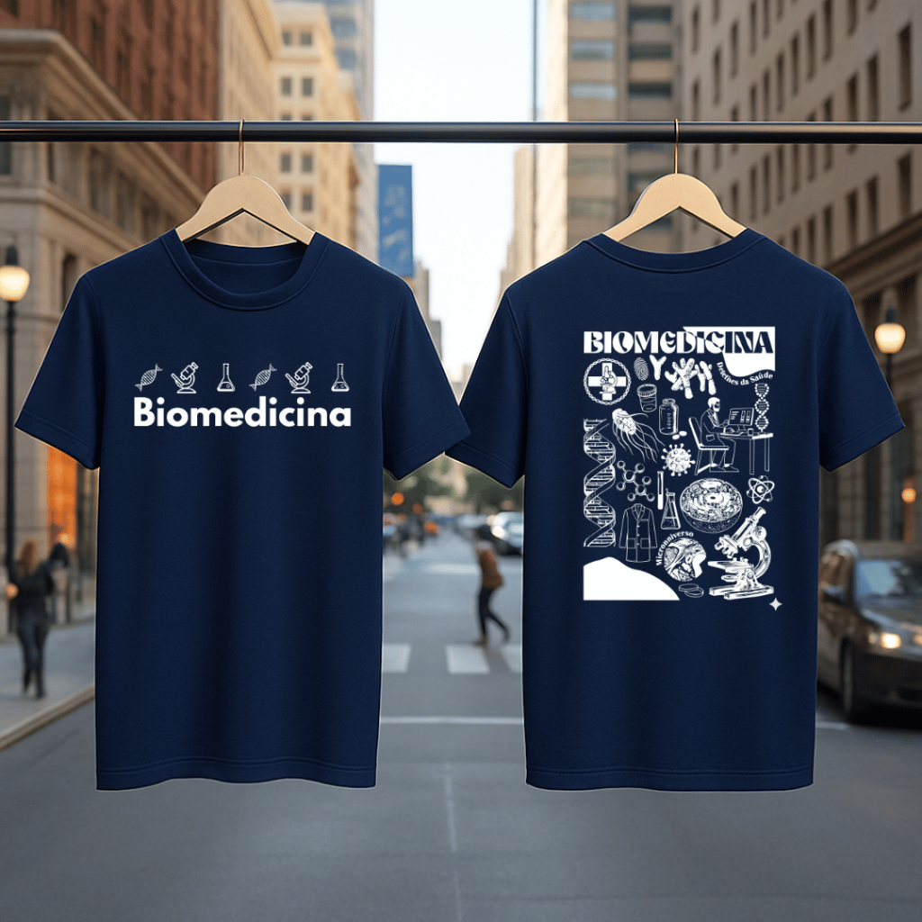 Camiseta UNISSEX 100% Algodão BIOMEDICINA FRENTE E COSTAS- PREMIUM