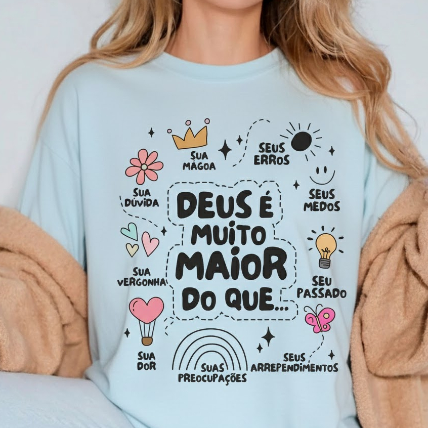 Camiseta Unissex Algodão Gospel Cristão Deus É Muito Maior
