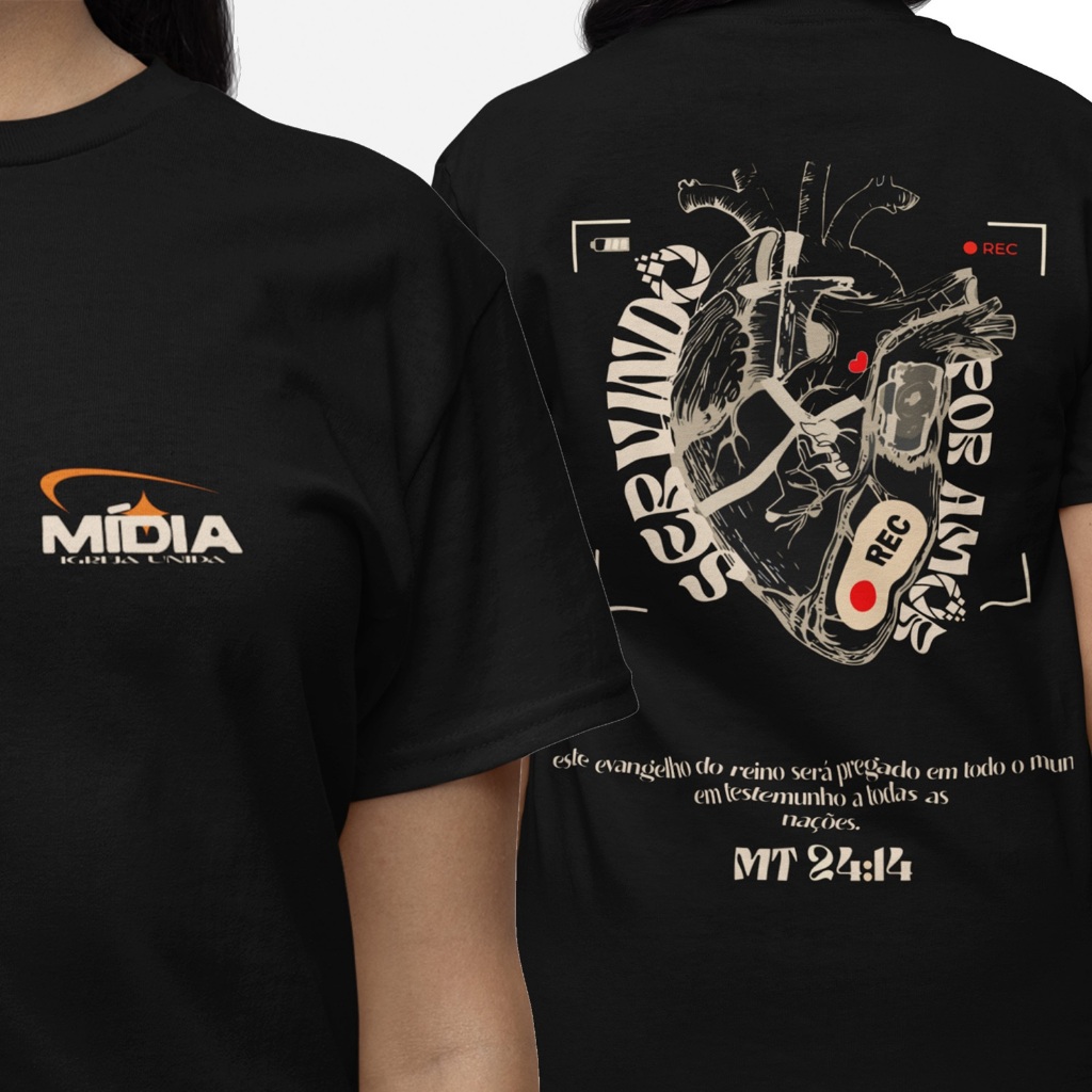 Camiseta Unissex Básica Mídias REC texto biblico Mateus 24 - 100% algodão