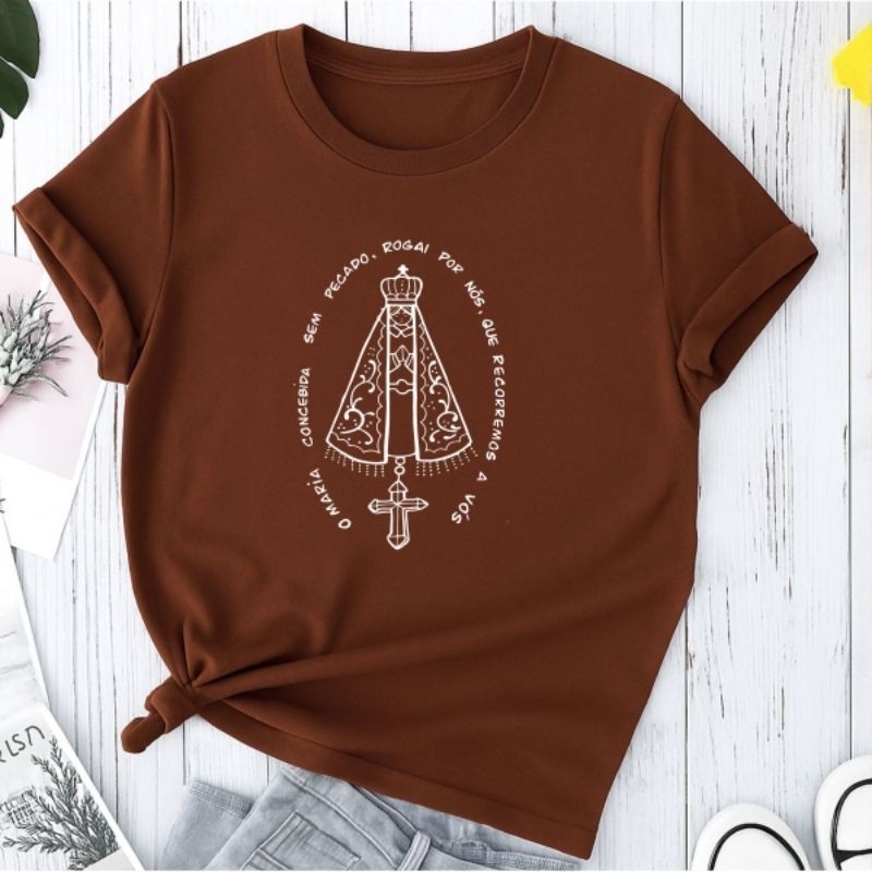 Camiseta Unissex Nossa Senhora Estampa Linda Católica Algodão Confortável