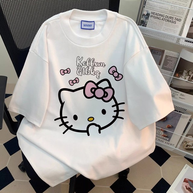 Camiseta Unissex Oversized Streetwear Estampa HelloKitty Envio Imediato Branco Camisa