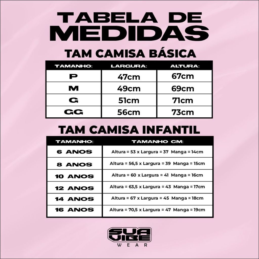 FICHA TÉCNICA: Modelo: Camiseta Material: 100% de algodão com Fio 30.1 penteado infantil Material: 100% Algodão Manga: Curta Gola Redonda Tamanhos: 02 ao 16 Preto MEDIDAS: Tamanhos 6 8 10 12 14 16 Ombro 10,18 10,9 11,63 12,36 13,09 13,81 Circunferência 78,2 82,2 86,2 90,2 94,2 98,2 Comprimento 54,22 57,72 61,22 64,72 68,22 71,72 Comp. Da Manga 14,88 15,88 16,88 17,88 18,88 19,88 ADULTO P AO GG E PLUSSIZE G1 AO G5 MEDIDAS: Tamanhos P M G GG G1 G2 G3 G4 G5 Ombro 15,33 16,01 16,68 17,36 17,89 18,58 19,27 20,01 21,01 Largura 103,2 109,2 115,2 121,16 122,4 128,4 134,4 135,00 136,00 Comprimento 74,98 77,47 79,97 82,47 83,35 85,85 88,36 89,00 90,00 Comp. Da Manga 25,15 25,15 27,15 29,15 29,51 30,01 30,51 31,01 31,51 ENVIAMOS TUDO PRAZO MAXIMO DE 24HS