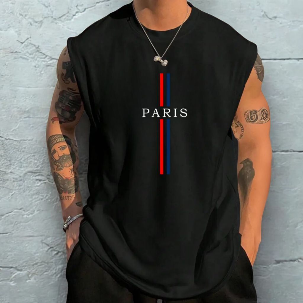 Camisetão Regata Oversized Larga Paris Despojada Casual Treino Sem Mangas Moda Verão Masculina