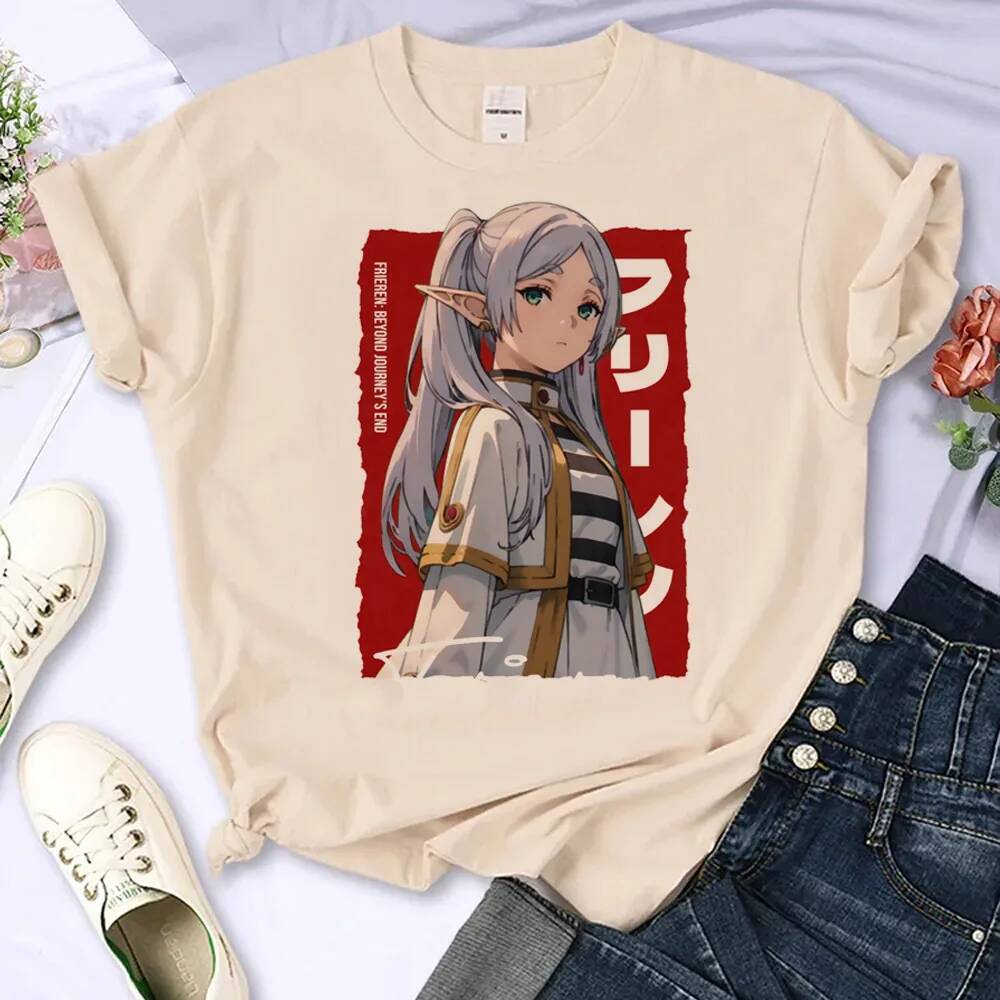 Camisetas Feminina Frieren Anime, Elfa Maga Cartoon Vintage Street Harajuku Manga