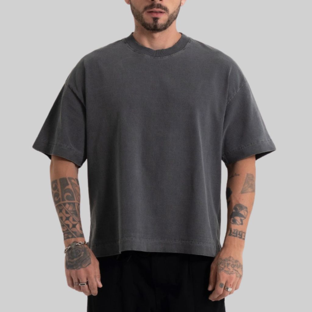 A Camiseta Heavy Boxy desenvolvida em 100% algodão com modelagem quadrada e oversized, que proporciona um ajuste solto e moderno. O comprimento é levemente mais curto devido ao corte boxy, garantindo um caimento único e descolado. Esse modelo está em alta no mercado internacional, sendo ideal para quem deseja criar peças diferenciadas e de alta qualidade para sua marca. Informações Técnicas Composição: 100% algodão fio 20.1 penteado; Gramatura: 220 g/m²; Encolhimento zero; Gola em anel de 3 cm, ribana canelada 2×1 com elastano e pesponto de 2 agulhas; Reforço ombro a ombro; Barra em bainha com 4 cm com 2 agulhas largas; Etiqueta interna de composição; Etiqueta de tamanho no ombro. Atenção As fotos podem ter leves variações de cores dependendo da iluminação e dispositivo; As medidas das peças podem ter variações mínimas nos tamanhos; Em produtos de algodão, o encolhimento pode ocorrer entre 3% a 5% em relação às medidas informadas na tabela; Este produto é produzido no formato BLANKS — não possuindo etiqueta fixada nas costas.