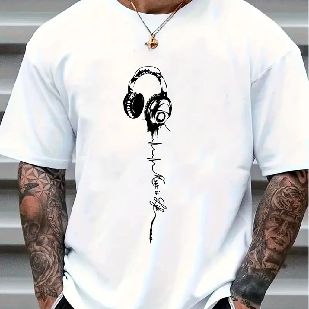 Camisetas Masculinas Com Estampa De Música De Manga Curta, Confortáveis E Casuais, Com Gola Elástica, Roupas Masculinas