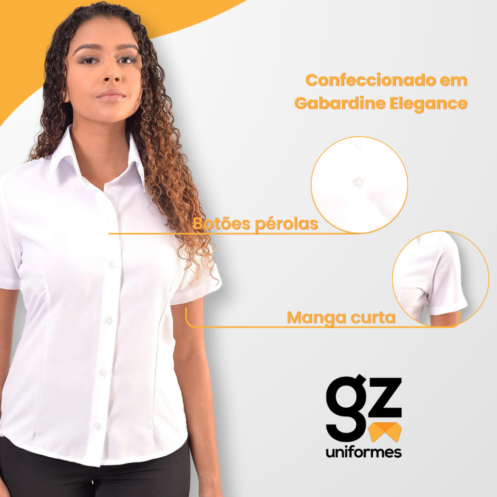 Quer uniformizar sua empresa? A GZ uniformes é a solução: QUEREMOS VESTIR SUA MARCA! • Há mais de 18 anos UNIFORMIZANDO equipes; • Somos loja de fábrica; • E compra garantida. Características essenciais para você que busca o distribuidor certo para os uniformes de sua empresa. LEIA AS PERGUNTAS FREQUENTES NO FINAL DA DESCRIÇÃO. TABELA DE MEDIDAS (cm): • PP » Ombro: 11cm / Busto: 93cm / Costas: 38cm / Cintura: 86cm / Quadril: 96cm / Comprimento: 59cm; • P » Ombro: 11cm / Busto: 94cm / Costas: 39cm / Cintura: 90cm / Quadril: 96cm / Comprimento: 59cm; • M » Ombro: 13cm / Busto: 102cm / Costas: 40cm / Cintura: 97cm / Quadril: 108cm / Comprimento: 63cm; • G » Ombro: 13cm / Busto: 108cm / Costas: 42cm / Cintura: 104cm / Quadril: 116cm / Comprimento: 65cm; • GG » Ombro: 14cm / Busto: 115cm / Costas: 45cm / Cintura: 110cm / Quadril: 126cm / Comprimento: 67cm; • XGG » Ombro: 16cm / Busto: 118cm / Costas: 47cm / Cintura: 116cm / Quadril: 132cm / Comprimento: 72cm; • G2 » Ombro: 16cm / Busto: 128cm / Costas: 49cm / Cintura: 122cm / Quadril: 142cm / Comprimento: 75cm; • G3 » Ombro: 17cm / Busto: 132cm / Costas: 51cm / Cintura: 128cm / Quadril: 150cm / Comprimento: 77cm; FICHA TÉCNICA: • Camisete Social Feminina Manga Curta; • Confeccionado em Gabardine Elegance; • Composição: 100% Poliéster; • Modelo: Social, com Manga Curta; • Cores: Branco, Preto e Azul Marinho; • Marca: GZ Uniformes; • Numerações: PP ao GG (Trabalhamos com tamanhos Plus Size). PERGUNTAS FREQUENTES: • ENTREGA POR TRANSPORTADORA, OU CORREIOS? Nossas entregas são realizadas via TRANSPORTADORA, toda logística de entrega é feita pela plataforma da Shopee. • QUAL NOSSO PÚBLICO PRINCIPAL? Somos uma empresa de uniformes profissionais, focada em uniformes administrativos e cozinha. • PRODUTO A PRONTA ENTREGA? Sim. Todos os nossos produtos estão disponíveis em estoque, enviados imediatamente após a confirmação do pagamento. • POSSO COMPRAR EM QUANTIDADE COM TAMANHOS DIFERENCIADOS? Sim, sem problemas. A Shopee não permite a seleção de mais de um tamanho, então, pedimos que entre em contato conosco, após a compra, para confirmar as numerações desejadas. Caso as numerações não sejam especificadas, entendemos que todas as unidades compradas são do mesmo tamanho. • QUERO TROCAR MEU PRODUTO. COMO FUNCIONA? Em caso de trocas é preciso entrar em contato com o vendedor pelo campo do pós-venda.