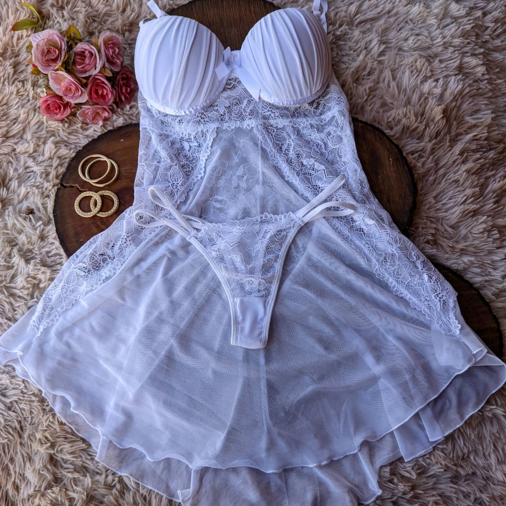 TECIDO SOFISTICADO COM TRANSPARÊNCIA Comprando a camisola Franciele você receberá 1 camisola e 1 calcinha! Bojo: P e M possuem bolha, ótimo para enchimento e sustentação. G e GG são de casquinha, totalmente confortável e ótimo para se modelar aos seios Tipo da Calcinha: Fio dental NÃO COMPRE SEM OLHAR A TABELINHA DE MEDIDAS! Tabela de medidas: P: Abaixo do busto -> 68/72 Busto-> 78/87 Quadril-> 78/87 Cintura -> 64/75 M: Abaixo do busto -> 73/78 Busto-> 88/92 Quadril-> 88/92 Cintura -> 76/ 85 G: Abaixo do busto -> 79/86 Busto-> 93/97 Quadril-> 93/98 Cintura -> 86/ 95 GG: Abaixo do busto -> 87/95 Busto-> 97/105 Quadril-> 98/115 Cintura -> 96/105 MATÉRIAS: Os materiais utilizados são de altíssima qualidade, de primeira linha no mercado. alta resistência e conforto, não utilizamos matérias de segunda linha, ao longo de 20 anos fabricando lingerie nunca tivemos problemas com alergias.