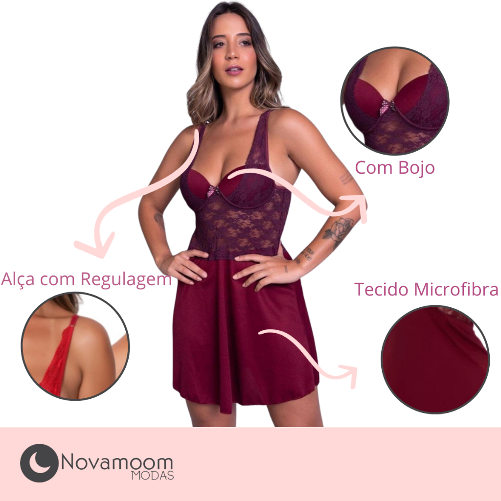 Camisola com Bojo Feminina Soltinha Luxo Renda Lingerie Moda Intima Dormir Alça Pijama