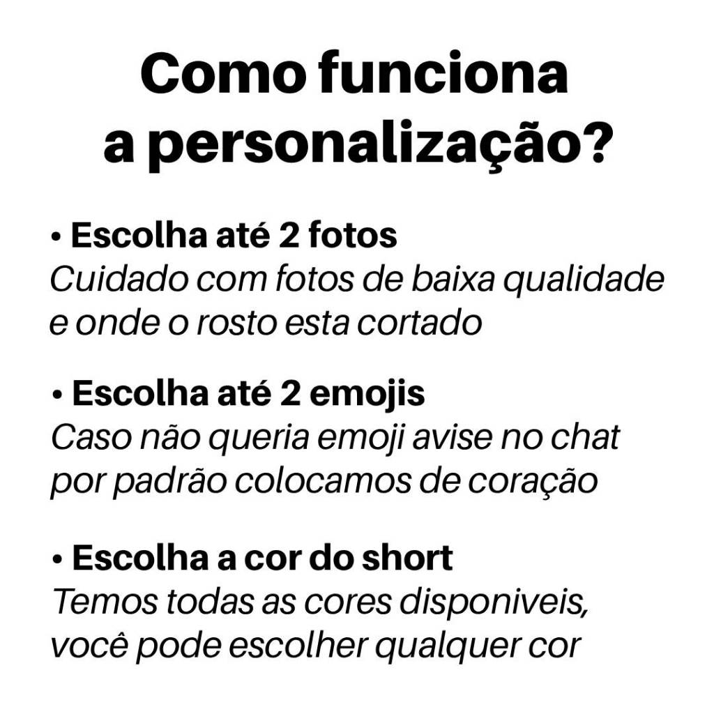 🎁 Excelente Presente para Dia dos Namorados, Aniversário ou Datas Especiais 🎁 🛑 LEIA TODA DESCRIÇÃO COM ATENÇÃO ANTES DE COMPRAR! 📌 Como Enviar Sua Foto: - Após a compra, escolha sua foto e envie pelo chat. - Trabalhamos com no máximo 2 fotos. - Caso queira a foto dentro de um coração nos informe no chat. 💡 Dicas para Fotos Marcantes: - Para recorte de rosto, envie uma foto de perto para garantir qualidade. - Evite foto de baixa qualidade ou que corte o rosto. - Nós cuidamos do recorte e ajuste perfeito da imagem. 📸 Sobre a Personalização: - Informe o emoji desejado e a cor do pijama. - Você pode definir se quer apenas o rosto sem emoji. - Não produzimos pijamas com imagens de personagens, celebridades, times ou qualquer outro elemento protegido por direitos autorais. Podemos criar seu pijama apenas com o recorte de rostos em imagens autorizadas por você. Fique à vontade para nos enviar novas opções! ⚠️ Importante: - Ajustes disponíveis: Pequenas modificações como alteração de cor da peça ou emojis. - A posição da arte é fixa para garantir o melhor resultado. - Escolha bem sua foto pois uma vez enviada, não será possível substituir a foto . - Não alteramos os tamanhos no chat, o tamanho que comprar será o tamanho que iremos enviar por isso, preste bem atençao na escolha do tamanho desejado! 🌈 Conforto e Qualidade: - Tecido: Moline – Leve, respirável e extremamente confortável. 📆 Agilidade na Produção: - Prazo de produção: até 7 dias úteis (podendo ser enviado antes). 🤑 Economize no Frete: - Utilize o carrinho para adicionar mais produtos e otimize o custo do frete. 🎁 Pensando em um Presente Único? - Para garantir a entrega a tempo, faça seu pedido com antecedência mínima de 30 dias úteis, considerando nossa produção artesanal e o tempo de envio. ❌ Política de Troca: - Por ser uma peça íntima e personalizada, não aceitamos trocas ou devoluções. Verifique todos os detalhes antes de finalizar seu pedido.