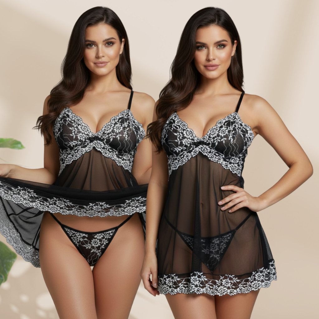 Camisola feminina confeccionada em tule leve e transparente, com renda floral delicada no busto e na barra. Modelo sem bojo, com alças ajustáveis, que garante conforto e um caimento elegante. Acompanha calcinha fio dental ajustável, combinando perfeitamente com a peça. Ideal para quem busca sensualidade com sofisticação. Medidas disponíveis: P (36/38): Busto 84-88 cm | Cintura 70-74 cm | Quadril 90-94 cm M (40/42): Busto 92-96 cm | Cintura 78-82 cm | Quadril 98-102 cm G (44/46): Busto 100-104 cm | Cintura 86-90 cm | Quadril 106-110 cm GG (48): Busto 106 cm | Cintura 94 cm | Quadril 114 cm !!ATENÇÃO!! - Para comprar mais de uma cor/modelo/tamanho, é só selecionar o que deseja e ir adicionando os itens por vez ao carrinho. Ao finalizar o pedido, todos os produtos estarão reunidos em uma única compra. - Verifique seu pedido antes de finalizar, pois não realizamos trocas de cores ou tamanhos via chat. O envio é feito conforme registrado no sistema. Perguntas frequentes: O produto tem garantia? Sim! Nossa produção é própria, com 30 dias de garantia de fábrica. O produto é enviado em embalagem lisa? Sim. Enviamos em embalagem lisa e discreta. O produto é igual ao da foto? Sim! Todas as fotos são reais, com modelos reais. Quando é realizado o envio? Nós enviamos em até 1 dia útil. lingerie, langeri, lingiri, pijama feminino, camisola sexy, camisola de tule, camisola rendada, baby doll, beibidol, babydool, bebydoll, camisola transparente, conjunto lingerie, fio dental feminino, calcinha sexy