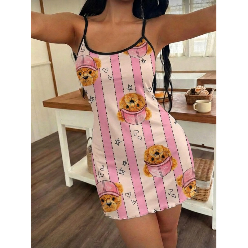 Camisola Estampas Fofas Feminino Vestido Suede Pijama Dormir