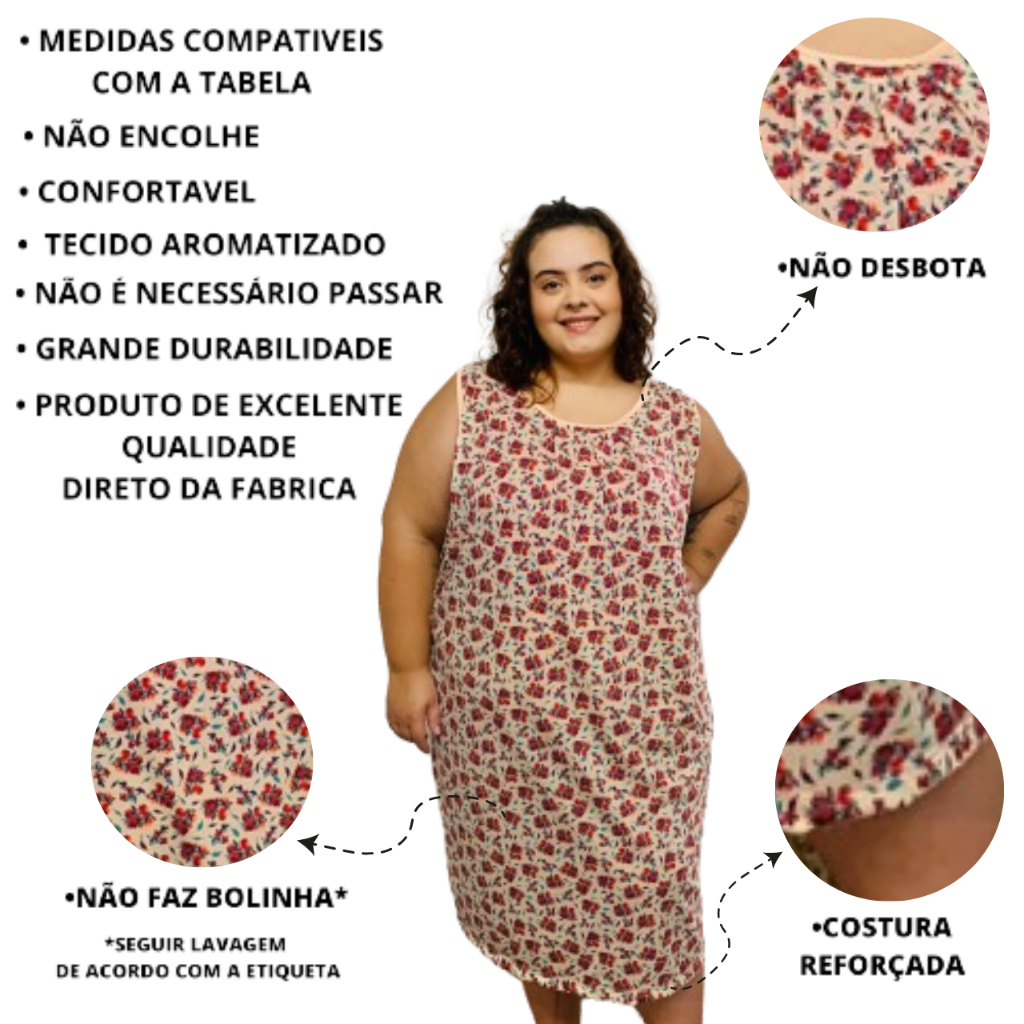 Camisola Extra Grande Plus Size Feminina Estampada Regata EXGG