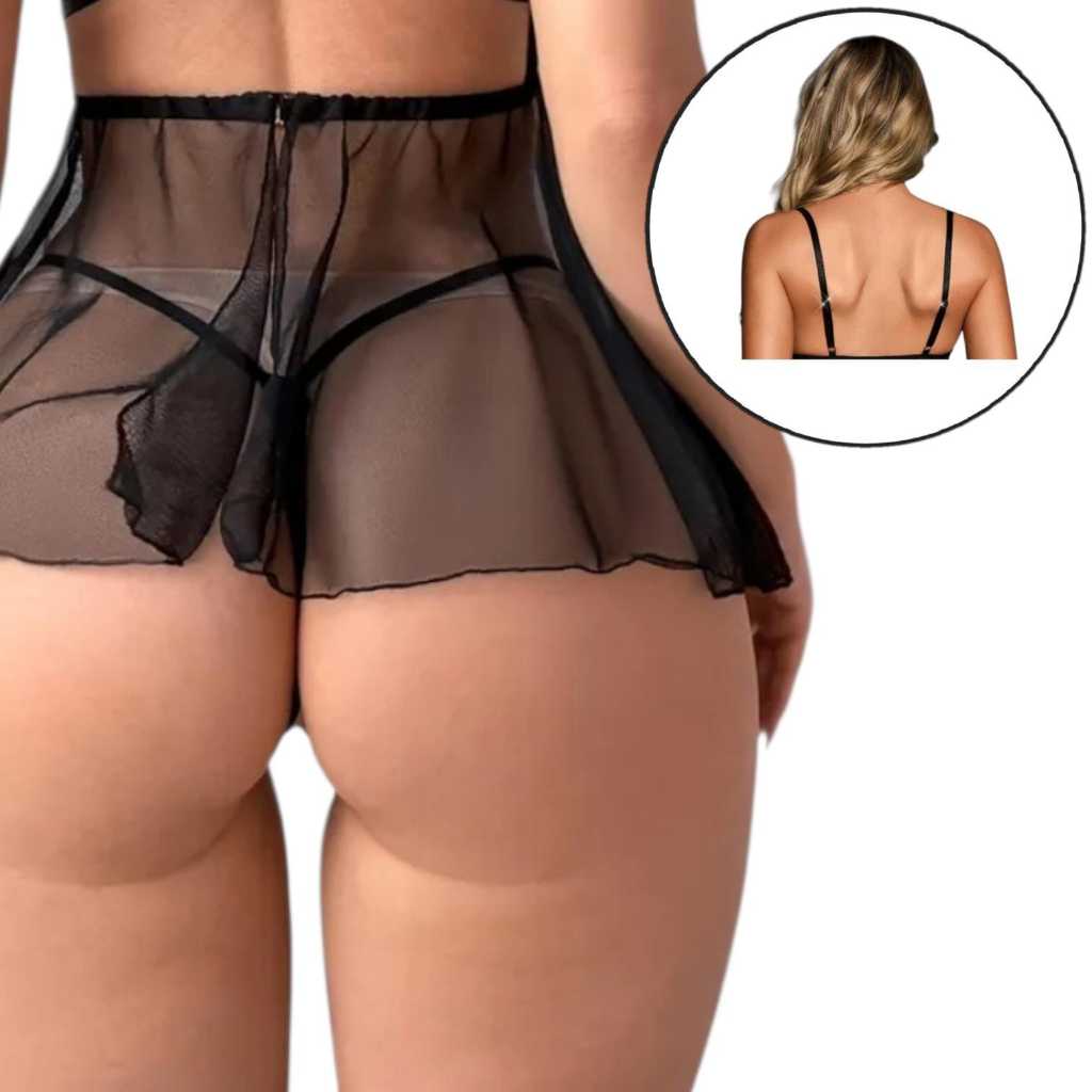 Camisola feminina curta transparente aberta seios com calcinha abertura sensual luxo 3200