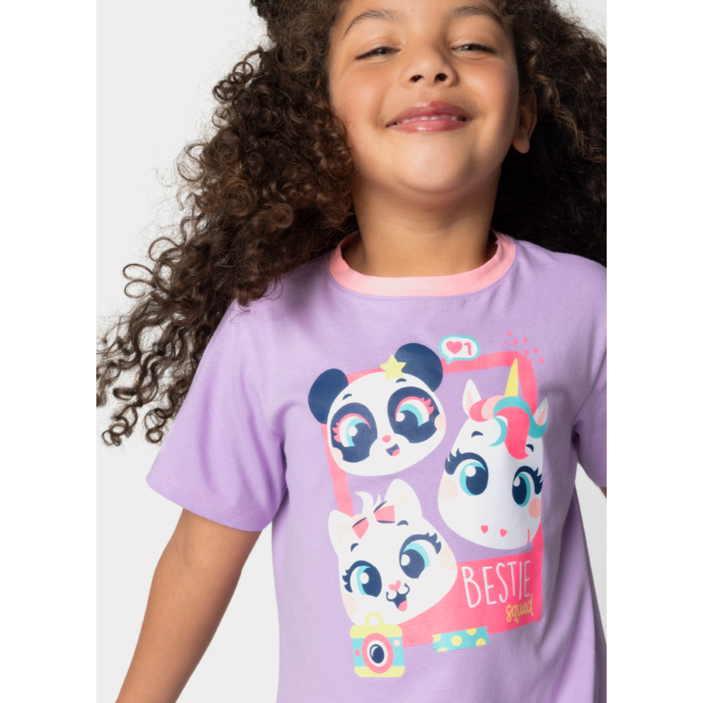 Camisola Manga Curta Algodão Menina Multibichos - Puket
